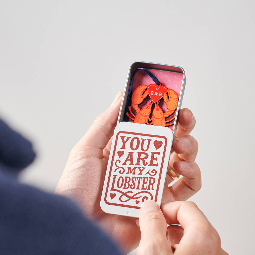 This Personalised Couples Lobster Decoration in a Keepsake Tin is the claw-some way to tell your partner they’re your one and only. The sliding aluminium tin is engraved with the sweet (and very “Friends”-famous) message: “You Are My Lobster”.