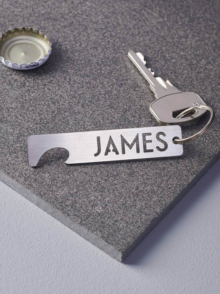 Label your keys and open your beverage with this fun and practical solid stainless steel name keyring. Fully personalised and hand finished.