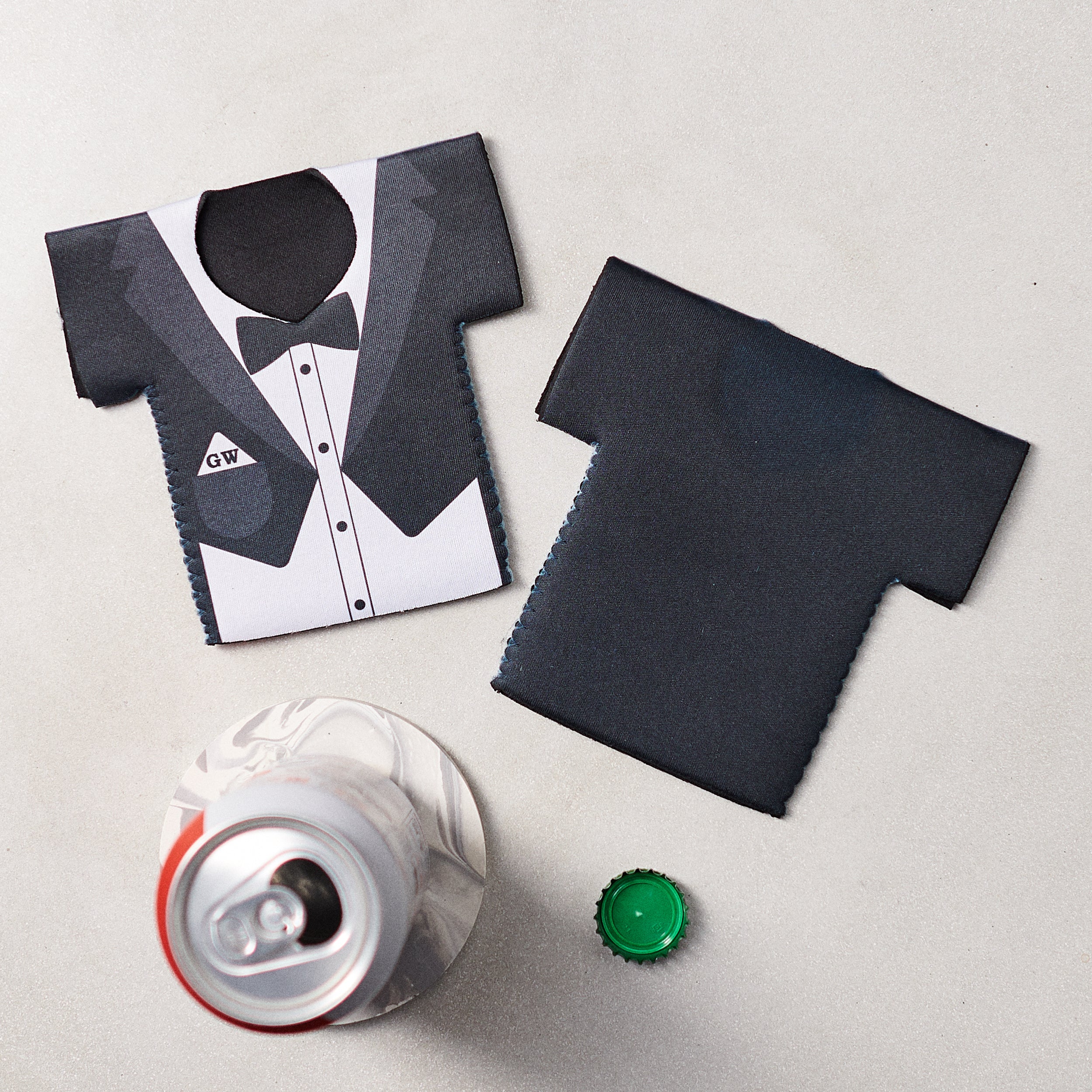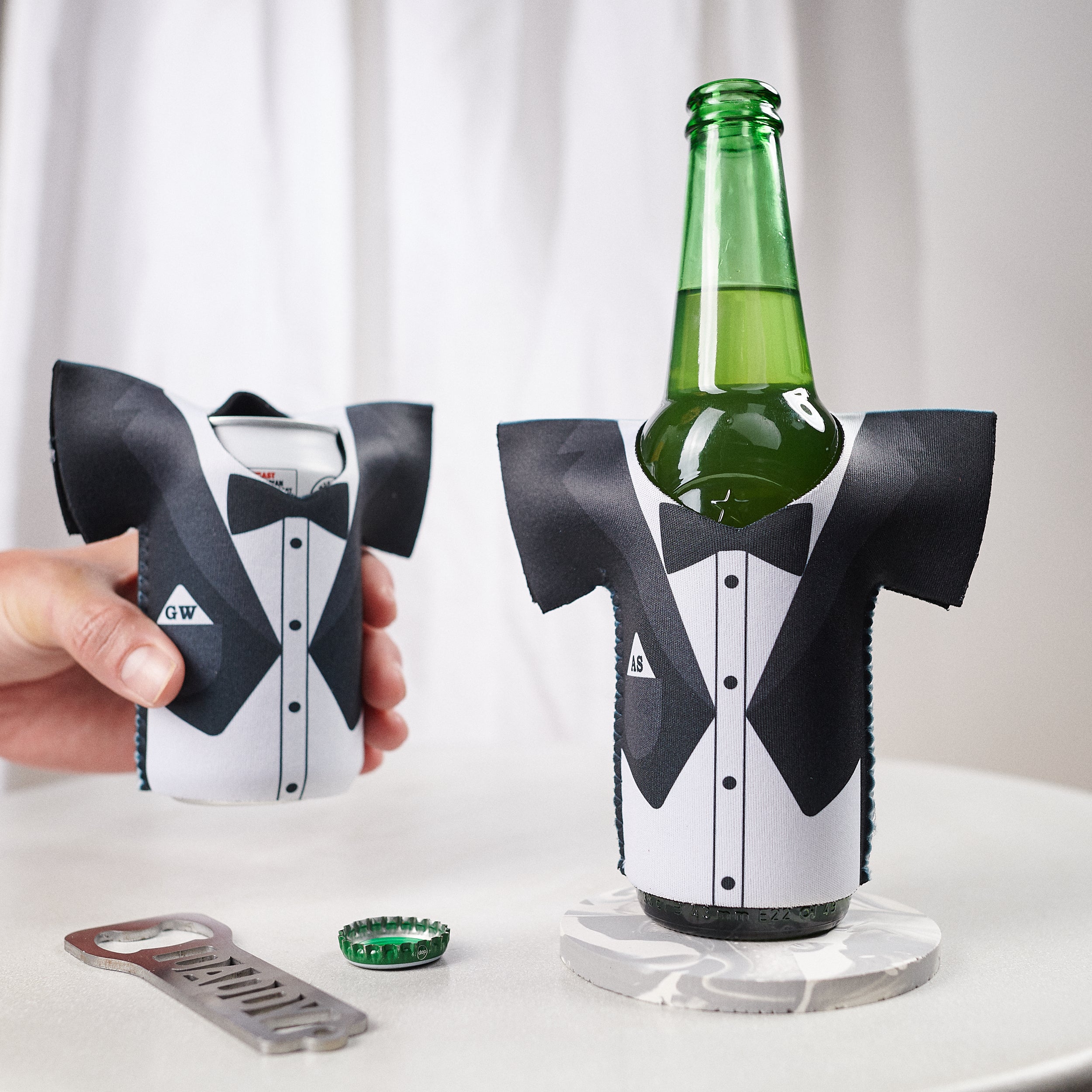 Turn happy hour into a high-class affair with this tuxedo can cooler!