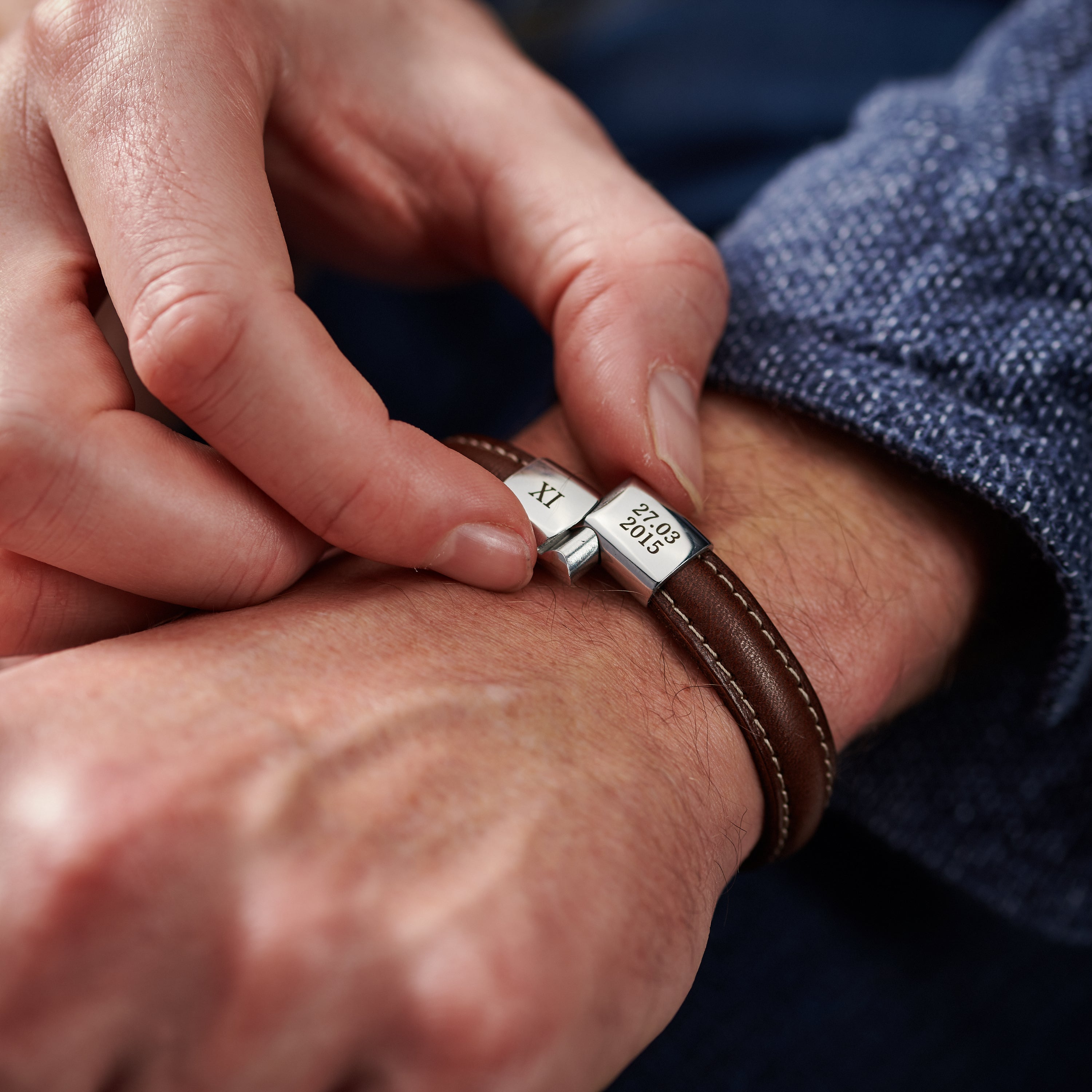 Designed and engraved by us in our Surrey workshop, each bracelet is engraved with exceptional precision and carefully hand-finished, ensuring the details are perfectly placed and beautifully crisp. The reverse of the clasp can be personalised with names, or short hidden message, a discreet detail just for him.