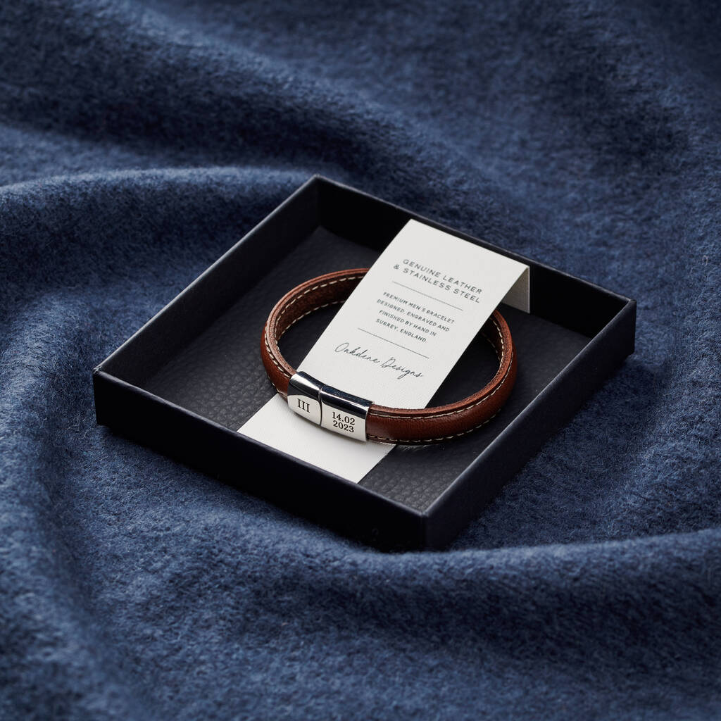 Personalised Men's Anniversary Leather And Steel Bracelet