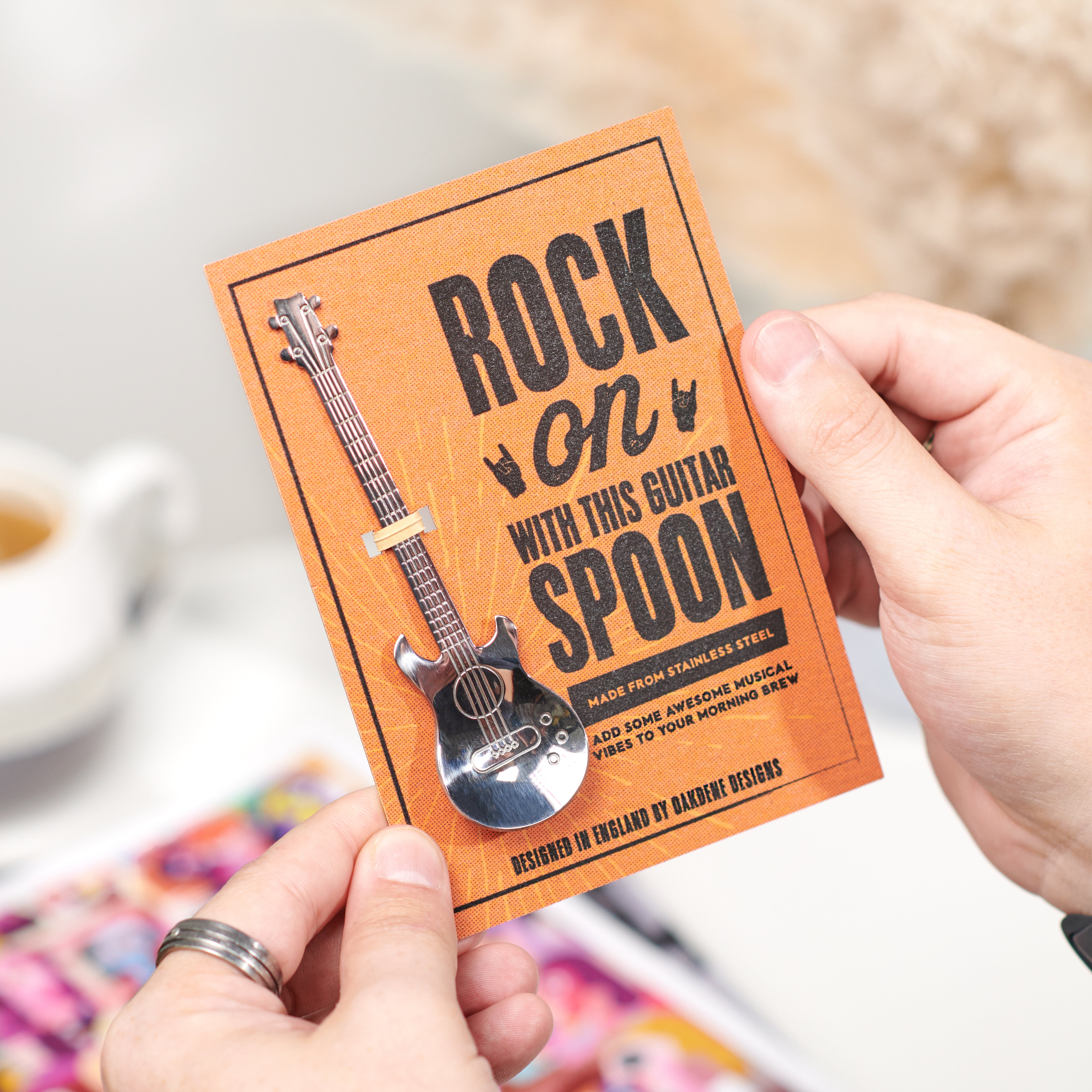 Each spoon comes backed to a fun and vibrant packaging board, making it the perfect ready-made gift for all guitat enthusiasts!