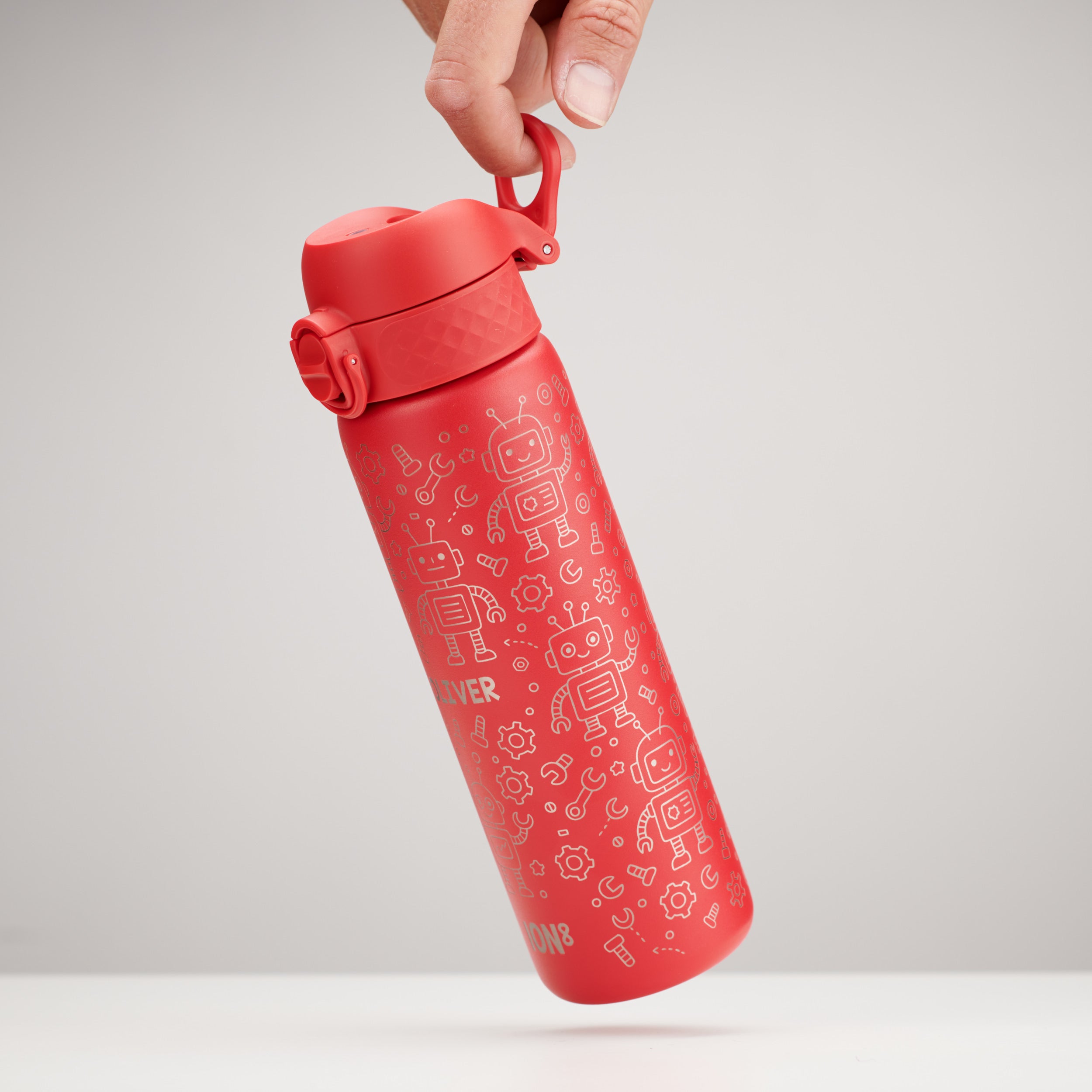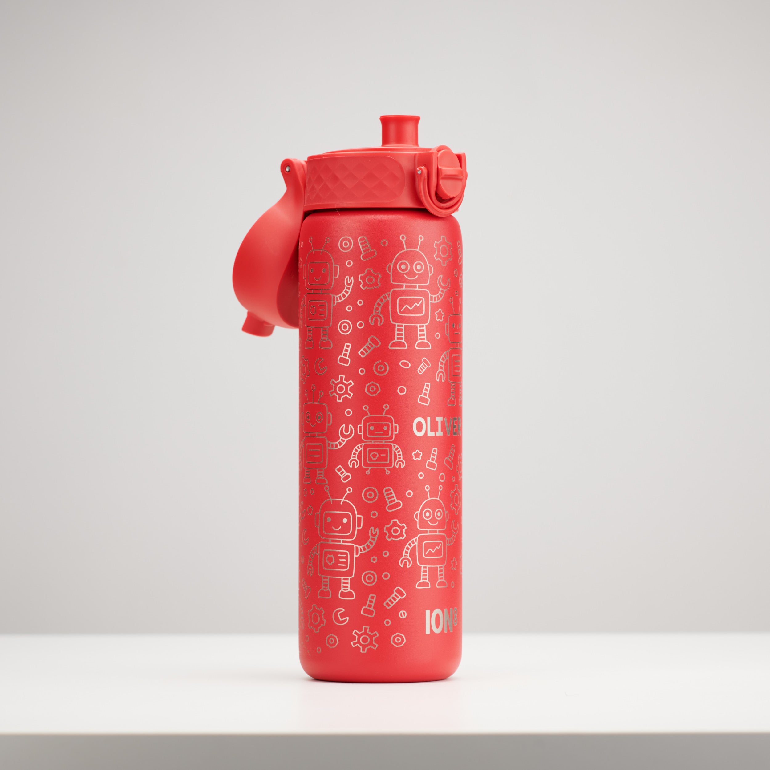 Personalised ION8 kids’ water bottle (600ml) with one-touch flip lid and 100% leak-proof design, perfect for back-to-school.