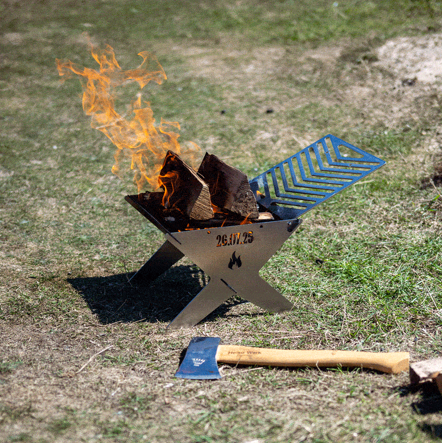 This solid steel personalised fire pit slots together in seconds, perfect for campfires which don't scorch the ground. Personalised with your chosen text.